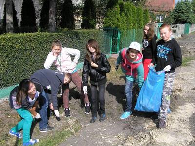 • Przedszkolaki porządkują teren wokół Przedszkola