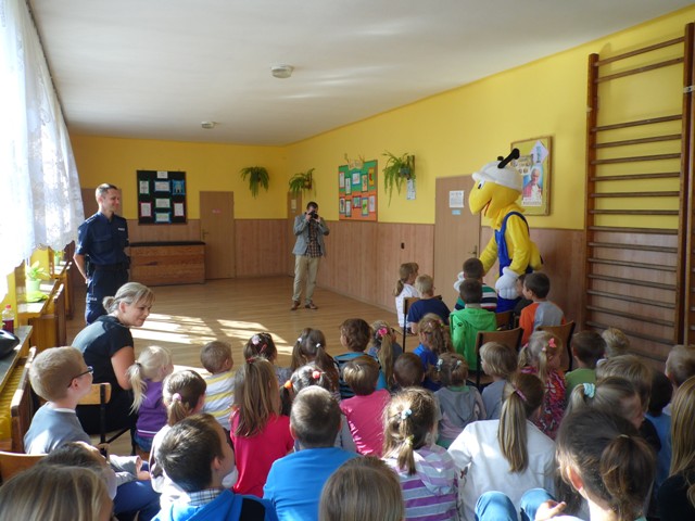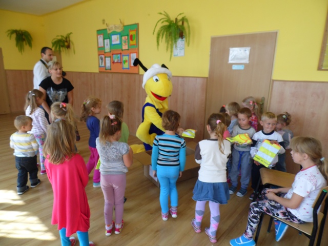„Bezpieczna droga do szkoły z Mrówką” - to hasło akcji przeprowadzonej wspólnie przez policję i SKLEP Mrówka przy ulicy Grodziskowej w Pińczowie. Mrówka z Pińczowa wraz z funkcjonariuszami Komendy Powiatowej Policji w Pińczowie przeprowadziła akcję w naszym przedszkolu. Założeniem przedsięwzięcia było przypomnienie i utrwalenie podstawowych zasad bezpiecznego poruszania się po drogach, zarówno w mieście jak i na drogach przebiegających przez wioski. Po spotkaniu z policjantem wszystkie dzieci otrzymały kamizelki odblaskowe.