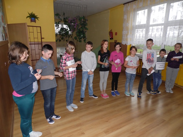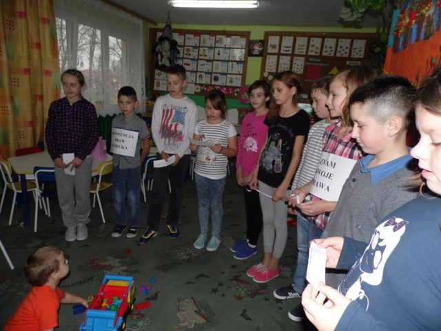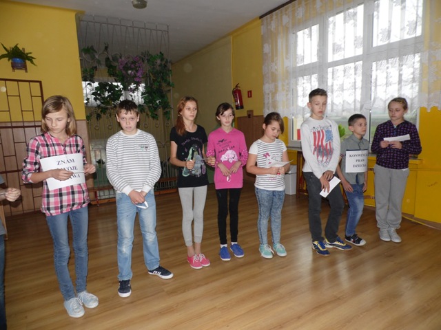 W tym roku – 20 listopada - po raz pierwszy obchodzono Ogólnopolski Dzień Praw Dziecka. Ten dzień to także 25. rocznica uchwalenia przez Zgromadzenie Ogólne Narodów Zjednoczonych najważniejszego dokumentu określającego prawa dziecka – Konwencji o Prawach Dziecka. Polska była jej inicjatorem i współtwórcą. Dokument ten do dzisiaj nazywany jest Światową Konstytucją Praw Dziecka. W ramach Ogólnopolskiego Dnia Praw Dziecka uczniowie naszej szkoły wraz z panią Barbarą Kozak zapoznali przedszkolaków z tematyką praw dziecka. Dzieci dowiedziały się, czym są prawa dziecka, jak rozumieć poszczególne zapisy Konwencji o Prawach Dziecka, gdzie szukać pomocy w sytuacji, gdy ich prawa są łamane.