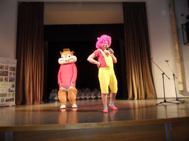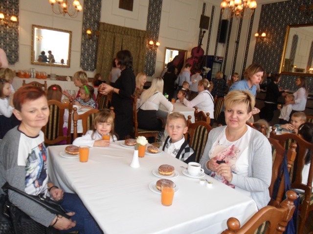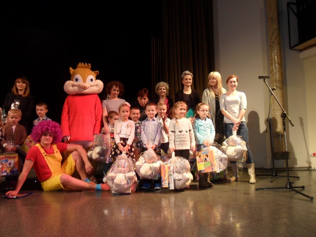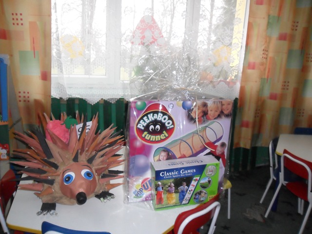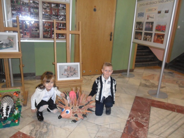 Dziś - 15 listopada dwoje przedszkolaków - Ania i Nikolas Kotułowie wraz z panią i mamami pojechali do Kielc. Celem tej wizyty był finał VI Edycji konkursu plastycznego "Eko-ludek zwierzątko". Konkurs ten zorganizował Zespół Świętokrzyskich i Nadnidziańskich Parków Krajobrazowych. Nasze przedszkole jako jedyne z terenu gminy Pińczów zakwalifikowało się do finału. Dzieci wykonały pięknego jeża, który był prowodyrem naszego wyjazdu. A tam .... Co tam się działo !!!! Dyrekcja pięknie powitała przybyłych gości i pogratulowała zwycięzcom. Potem imprezę prowadził Mateusz i Wiewiór, którzy wspaniale nas zabawiali. Po części, w której dominowały tańce nastąpiło wręczanie nagród. Każde dziecko otrzymało maskotkę - hipopotama i gry a dla przedszkola zdobyliśmy tunel i worki gimnastyczne, które z pewnością będą pomocne podczas zabaw i ćwiczeń w przedszkolu. Po tych "ekscesach" zaproszono nas na poczęstunek aby wzmocnić nasze nadwątlone tańcami siły.