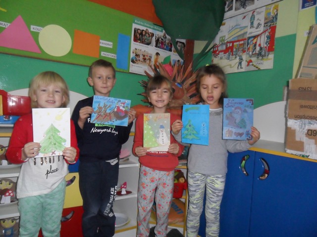 Bardzo lubimy brać udział w różnych konkursach i dlatego wykonaliśmy piękne kartki świąteczne na konkurs plastyczny zorganizowany przez PSCK w Pińczowie pn. "Kartka Bożonarodzeniowa".