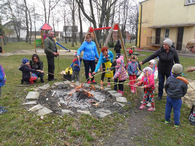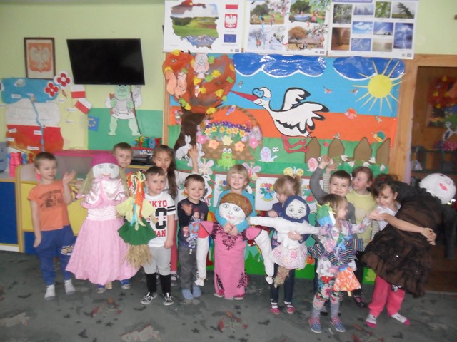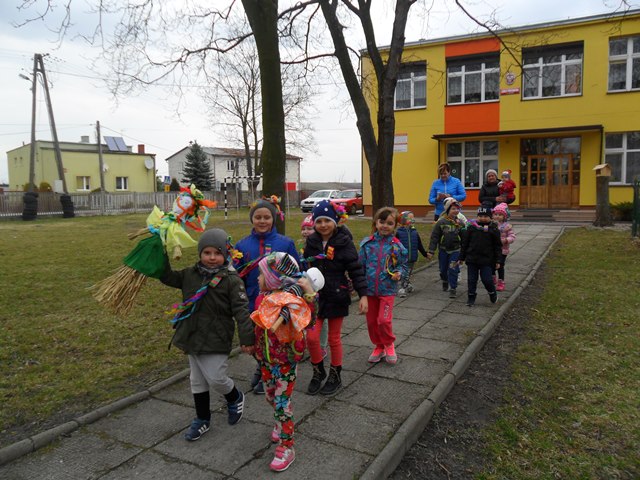 Wspólnie z naszymi mamami wypowiedzieliśmy wiosenne zaklęcie i Marzanna- symbol zimy od nas odeszła.