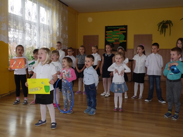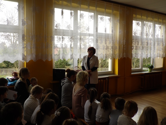 W ramach "Spotkań z ciekawymi ludżmi" naszą szkołę i przedszkole odwiedziła pielęgniarka – pani Elżbieta Majcher. Ideą przewodnią tego spotkania było propagowanie zdrowego stylu życia. Pani Elżbieta przybliżyła nam sprawy dbania o higienę osobistą a także poruszyła temat zdrowego odżywiania się. W pogodny sposób opowiedziała nam dużo ciekawostek z racji wykonywanego zawodu. Dzieci z ogromnym zainteresowaniem wysłuchały tej interesującej pogadanki. Aby uświetnić wizytę takiego gościa przedszkolaki i dzieci ze szkoły przedstawiły krótki występ artystyczny.