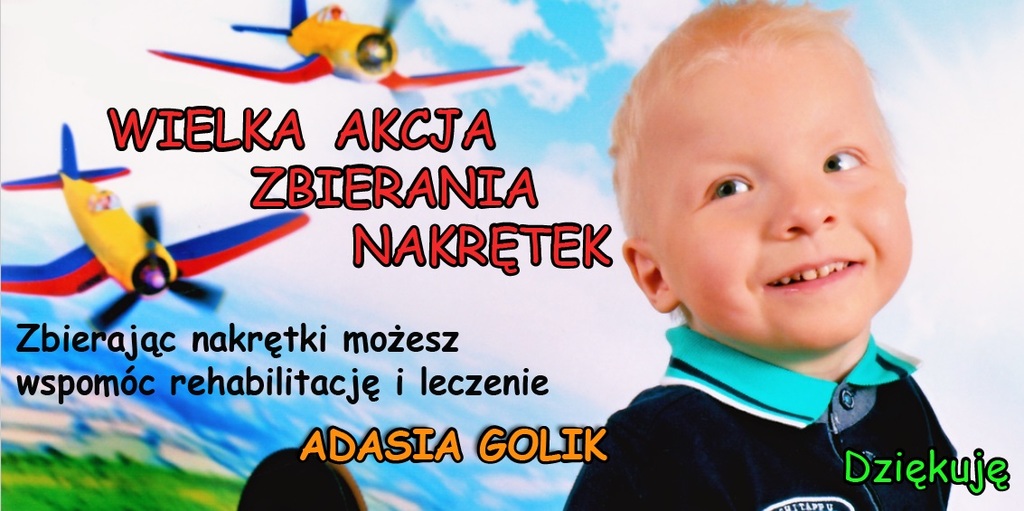 Poruszeni apelem o pomoc dla chorego Adasia zbieramy dla niego nakrętki na Jego rehabilitację.