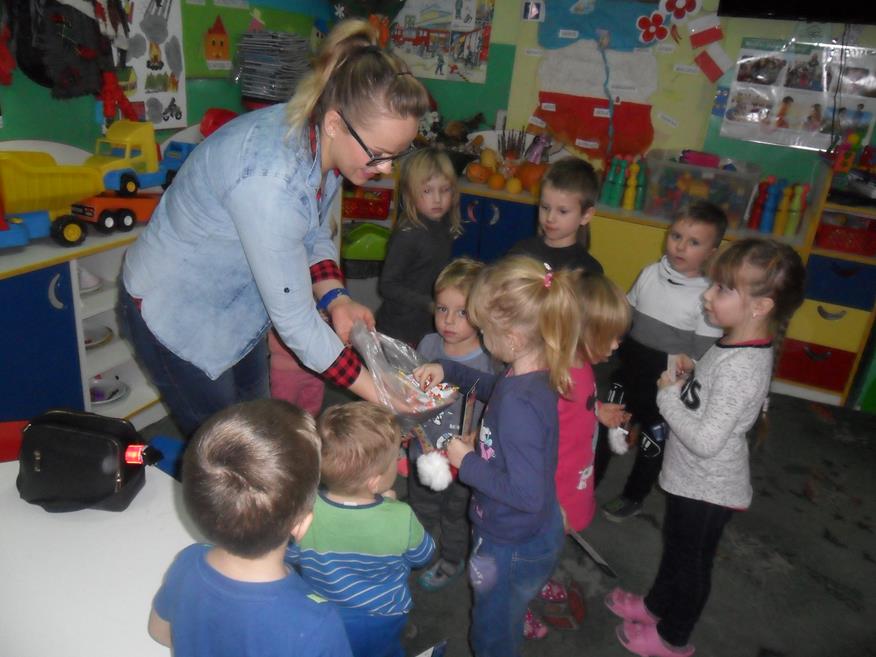 Tuż po obiedzie pani Magdalenka czytała nam przepiękne baśnie. Poczęstowała nas cukierkami a dla każdego przedszkolaka przygotowała niespodziankę - śliczne upominki.