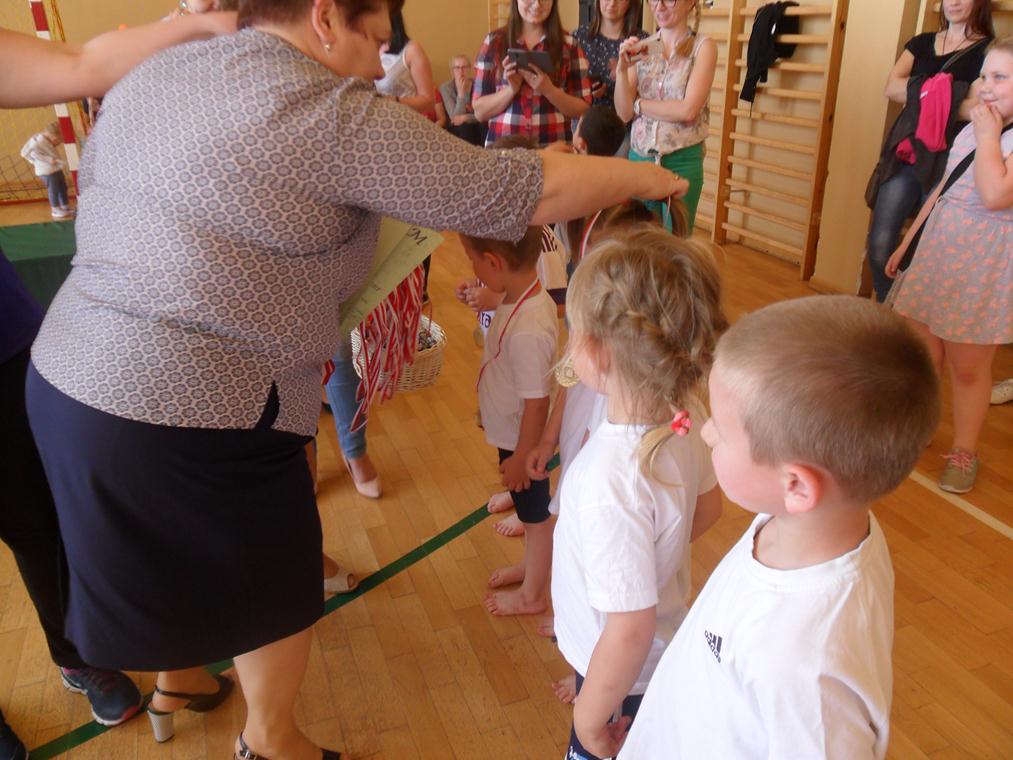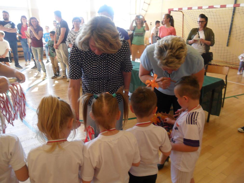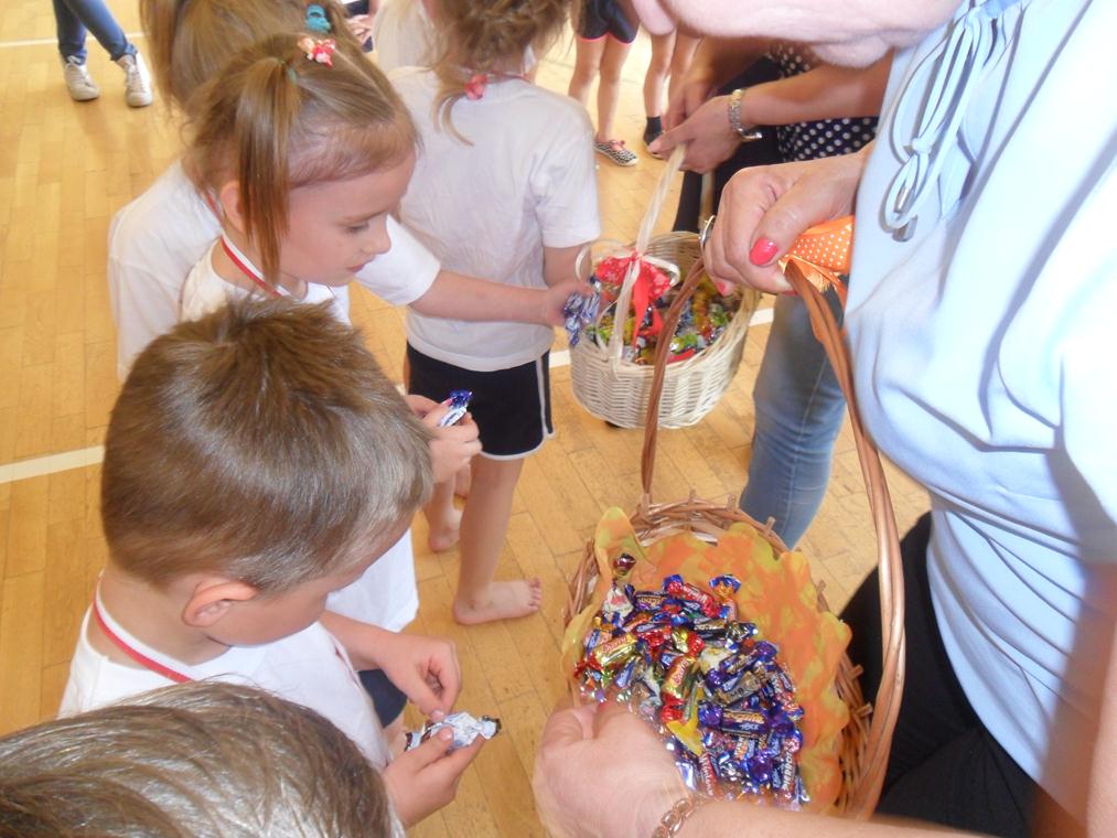 Po zaciętych "bojach" otrzymaliśmy puchar, dyplom i baaaaardzo dużo cukierków, które wręczały nam pani dyr. T .Zawartka i pani dyr. M. Bębenek.