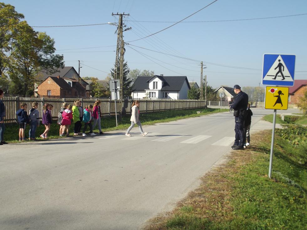 10.10.2018r. uczniowie klas I - III pod okiem przedstawiciela Policji – Pana dzielnicowego ćwiczyli przejście przez jezdnię.