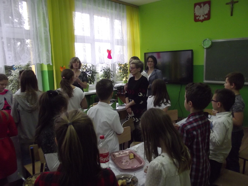 W ostatnim dniu nauki przed świętami Bożego Narodzenia zorganizowaliśmy w naszej szkole wspólną Wigilię klas IV-VIII. Przy pomocy naszych wychowawczyń przygotowaliśmy nakryty białym obrusem stół, na którym znalazł się opłatek, świąteczny stroik oraz wigilijne potrawy przygotowane przez nasze Kochane Mamy. Dzieląc się opłatkiem składaliśmy sobie życzenia na Boże Narodzenie i Nowy Rok 2019.