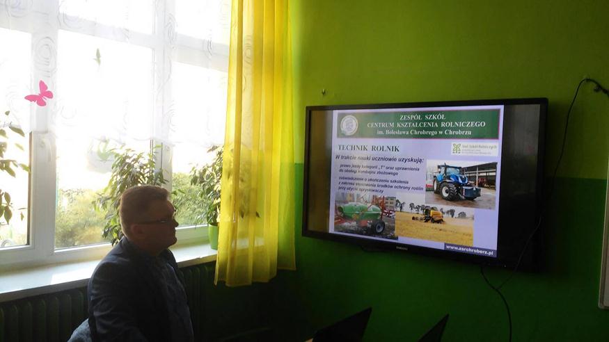 4 kwietnia 2019 roku gościliśmy w naszej szkole nauczycieli Zespołu Szkół Centrum Kształcenia Rolniczego w Chrobrzu – p. Teresę Ryczek – szkolnego pedagoga, nauczycielkę geografii, WOS-u i historii oraz p. Artura Sakwę- kierownika internatu. Ósmoklasiści zapoznali się z ofertą ZSCKR na przyszły rok szkolny, dowiedzieli się, jakie mogą zdobyć kwalifikacje na poszczególnych kierunkach oraz gdzie, kiedy i jakie dokumenty będą wymagane podczas rekrutacji do klas pierwszych.