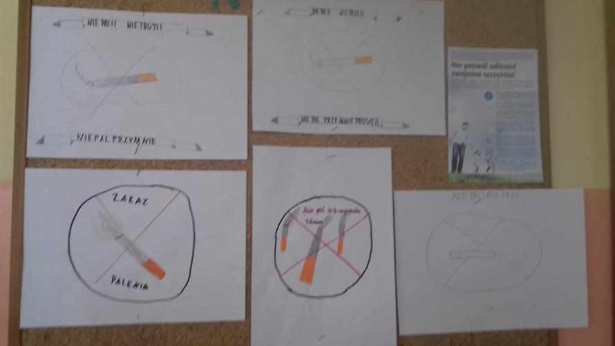 Bardzo chętnie wykonali plakaty oraz gazetkę na temat zakazu palenia papierosów.
