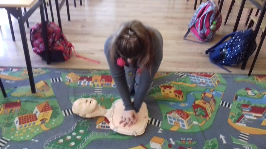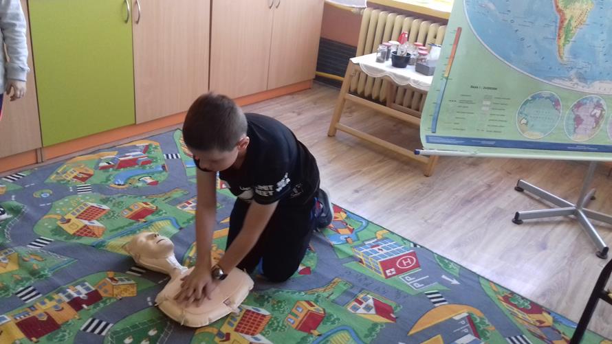 Na zajęciach uczniowie w formie zabawy uczą się jak pomóc osobom poszkodowanym - potrzebującym pomocy. Oglądają filmy instruktażowe, korzystają z podręczników do nauki pierwszej pomocy oraz ćwiczą na fantomach.