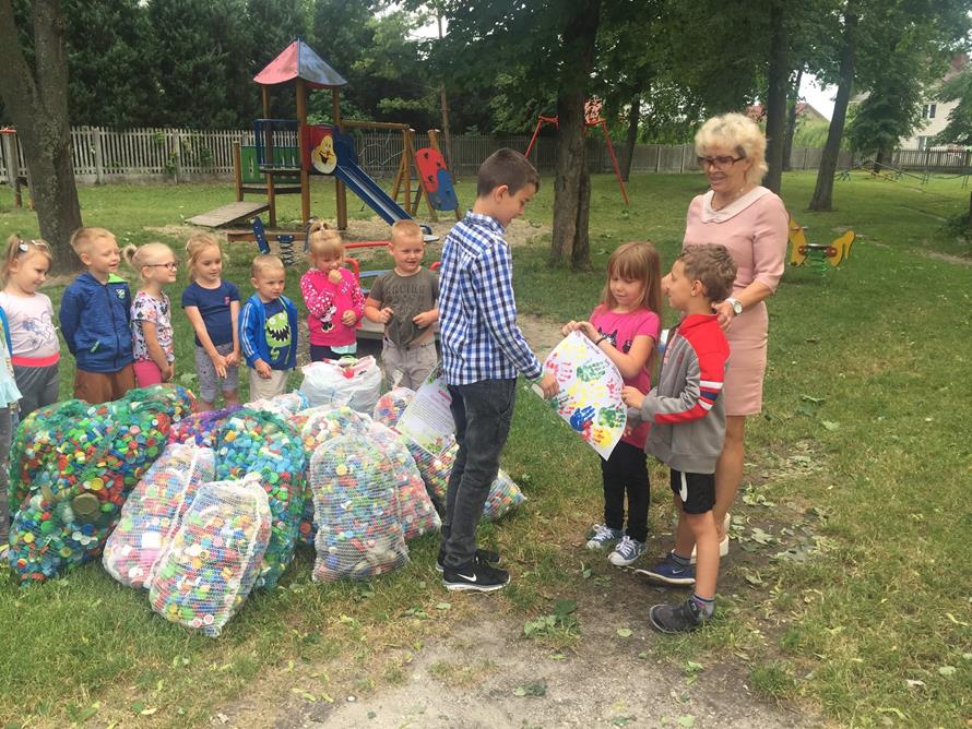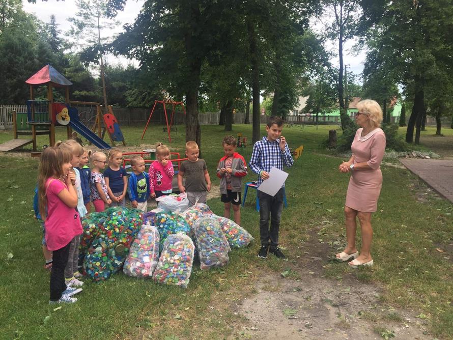 Z ogromną radością informuję, iż przedszkolaki wspólnie z rodzicami od września do czerwca 2019 roku zgromadzili 21 worków nakrętek dla Karolka Chrobota. Do grona przyjaciół Karolka dołączyła również pani Aleksandra Ostrowiecka - właścicielka spopielarni w Pińczowie, która także jest zaangażowana w tę fantastyczną akcję.