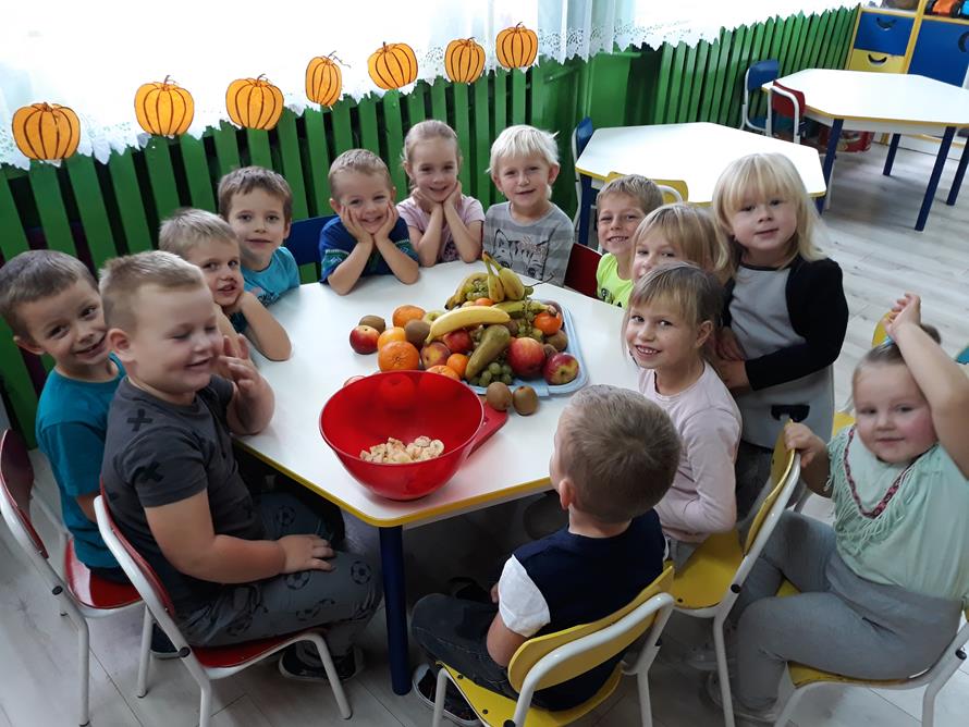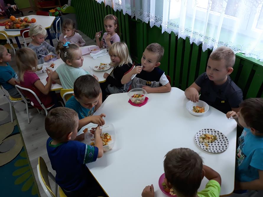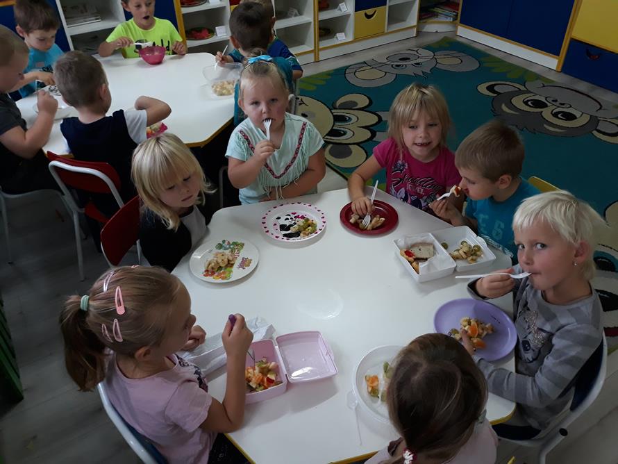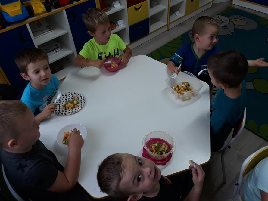 Dziś robiliśmy sałatkę owocową. Na naszych talerzach było mocne „uderzenie” ze strony witamin.