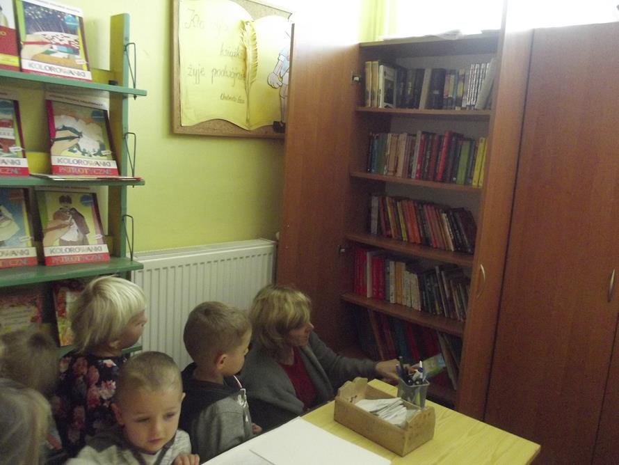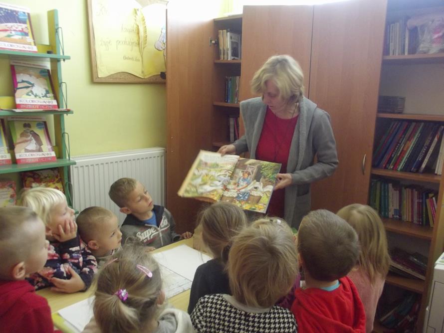 Pani Krzak zapoznała nas z wyposażeniem biblioteki, z księgozbiorem i kartą czytelnika. W przystępny dla nas sposób otworzyła podwoje baśni, bajki, bajeczki.