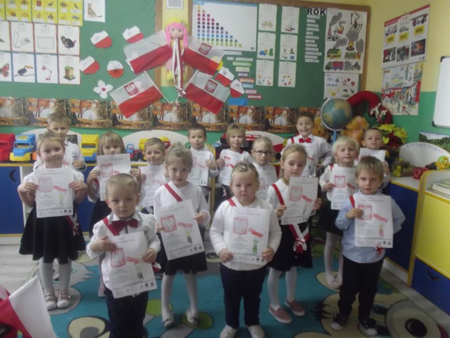 Przedszkolacy w związku z powierzonym zadaniem przez organizatora tej akcji w II części zajęcia kolorowały nasze polskie symbole narodowe, które po przyjściu do domu wręczyli rodzicom i opowiadali o treści zadań, które mieli do wykonania.
