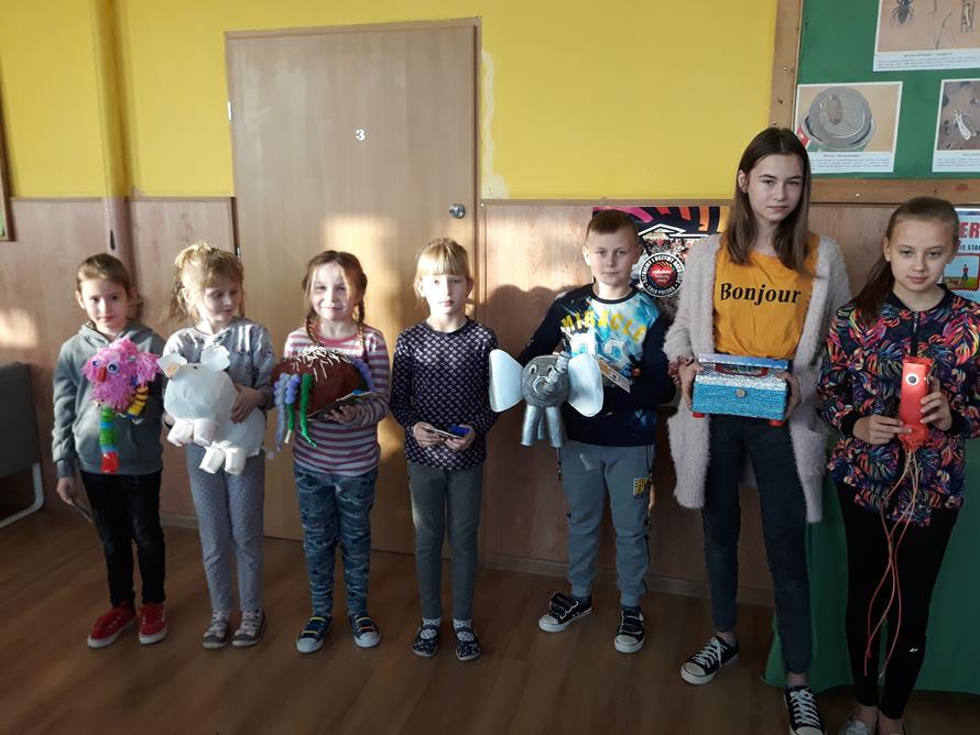 Dnia 11 grudnia 2019 roku odbyło się rozstrzygnięcie szkolnego konkursu na ekologiczną zabawkę „ŚMIECIUSZEK”. Konkurs wrósł już w tradycję naszej szkoły. Choć organizowany jest od kilku lat to uczniowie nie przestają zadziwiać pomysłami, pamiętając, że zabawki wykonane zostały z surowców wtórnych czyli odpadów.