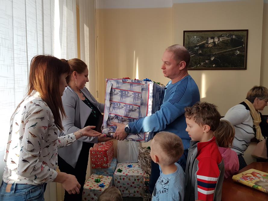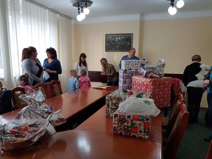 W ten czarowny, przedświąteczny czas wspólnie z naszymi wspaniałymi rodzicami przygotowaliśmy paczki świąteczne dla 3 potrzebujących rodzin. Nasz świąteczny apel spotkał się z cudownym odzewem wśród dorosłych. Do naszej akcji włączył się także pan Henryk Nowak – właściciel sklepu w Zagości, który ufundował paczkę żywnościową. Nasza pani i 10 mam ufundowały ogromne paczki z zabawkami i słodyczami. W wesołych nastrojach wyruszyliśmy do Starostwa Powiatowego w Pińczowie, gdzie doszło do spotkania i przekazania naszych niespodzianek.