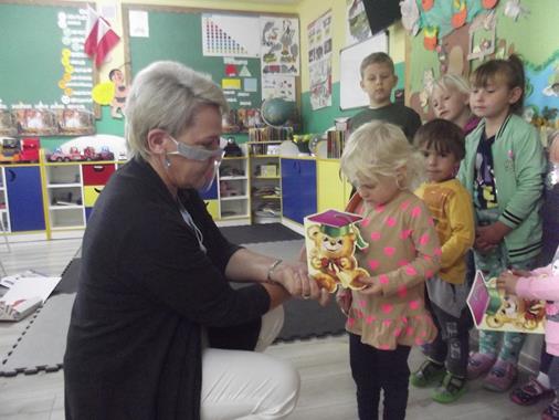 Dziś - w najważniejszym dniu roku czyli w Dniu Przedszkolaka pani dyrektor pasowała na przedszkolaka nasze malutkie koleżanki i kolegę. Wszyscy otrzymaliśmy dyplomy i słodycze. Wesoło bawiliśmy się wśród kolorowych baloników.