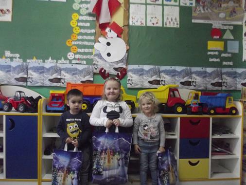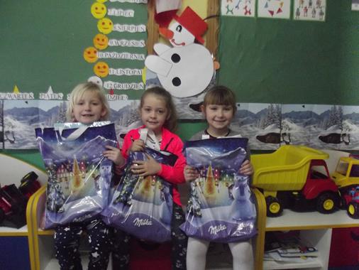 A na stole sobie leżą paczki od Świętego Mikołaja.