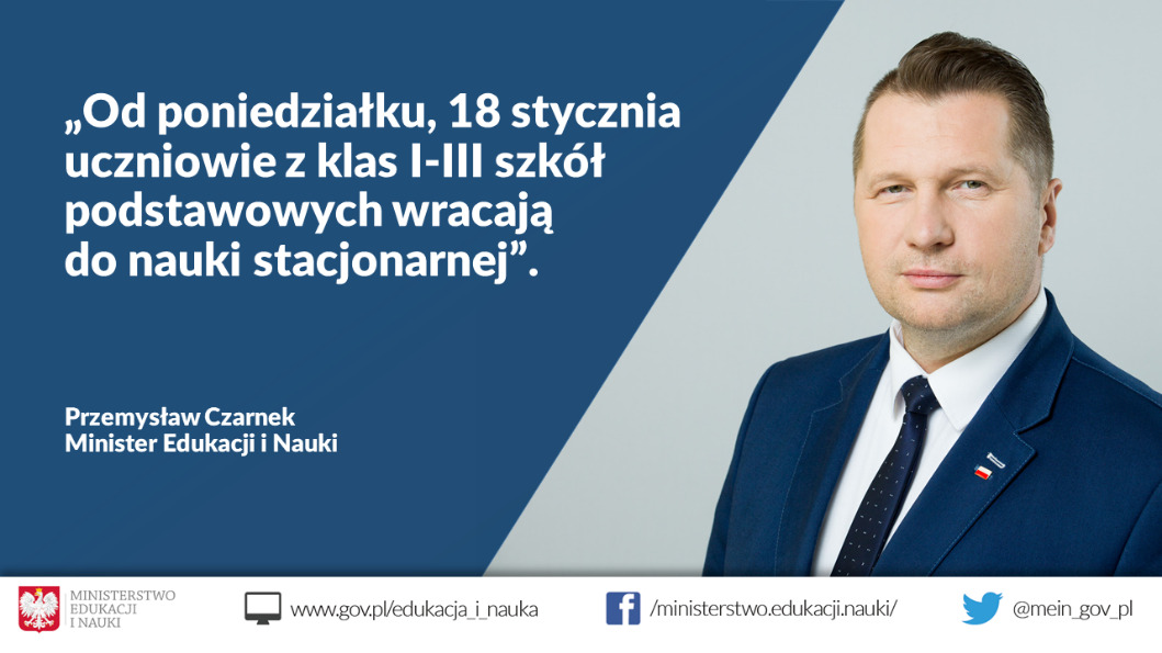 Dyrektor Szkoły Podstawowej w Zagości informuje, iż od poniedziałku 18 stycznia klasy I –III wracają do szkoły.