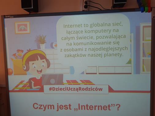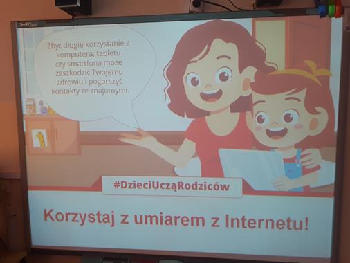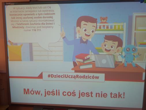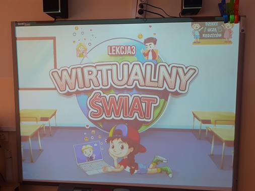W ramach ogólnopolskiej akcji edukacyjnej pn. ,,Dzieci Uczą Rodziców ", dnia 3 lutego w klasach II i III została przeprowadzona lekcja pt.,, Wirtualny świat". Uczniowie obejrzeli bardzo ciekawą prezentację, z której dowiedzieli się: