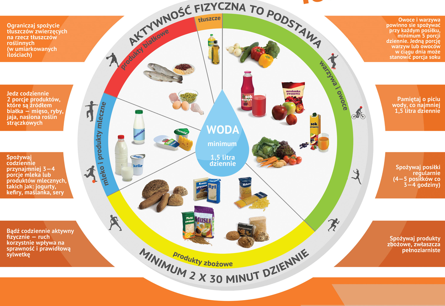 - Podstawą prawidłowej diety jest różnorodność spożywanych produktów. Jedz 3 – 5 posiłków dziennie, w tym koniecznie śniadanie. Pamiętaj, że przerwy między posiłkami nie powinny być dłuższe niż 4 godziny.