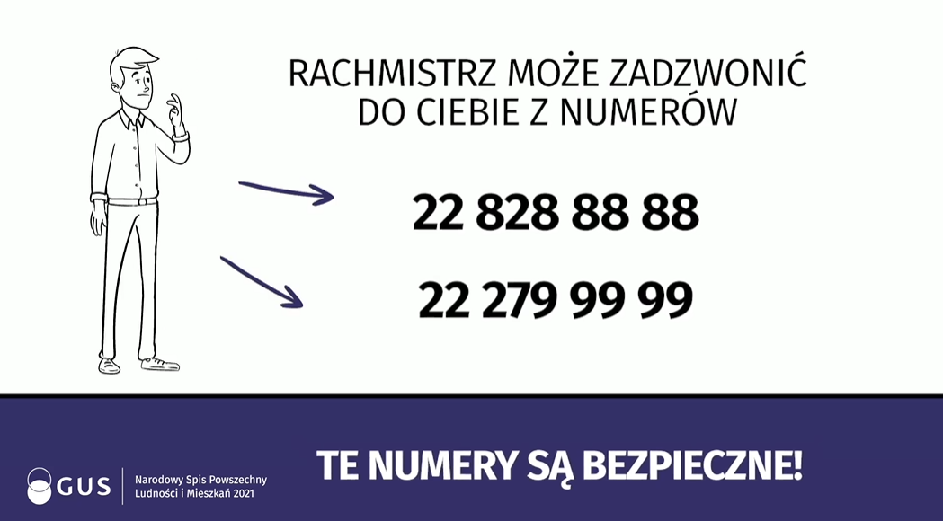 Rachmistrz może zadzwonić do Ciebie z numeru 22 828 88 88 lub z numeru infolinii spisowej tj. 22 279 99 99. Zgodnie z ustawą nie możesz odmówić mu przekazania danych. Za odmowę udziału w spisie grozi kara grzywny.