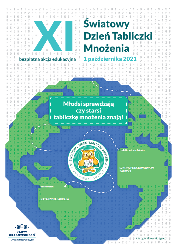 1 października obchodziliśmy XI Światowy Dzień Tabliczki Mnożenia. Celem akcji było propagowanie zabawowej formy nauczania-uczenia się matematyki. Miała ona zachęcić do przypomnienia sobie tabliczki mnożenia w przyjemny, niecodzienny sposób. Akcja była okazją dla uczniów do nadrobienia „tabliczkowych” zaległości po wakacjach. W tym dniu uczniowie rozwiązywali zagadki z tabliczką mnożenia i dzielenia. Wspólnie uczyli się i bawili.
