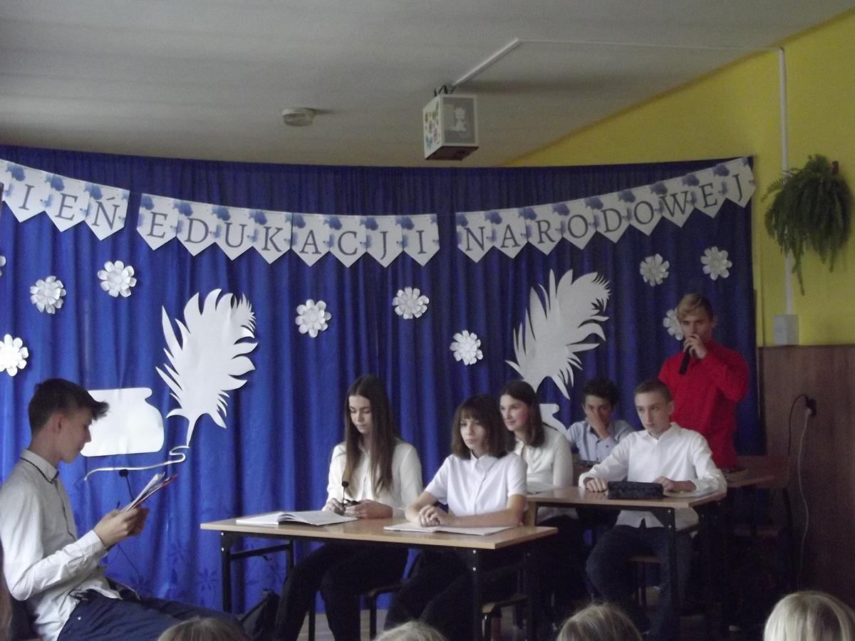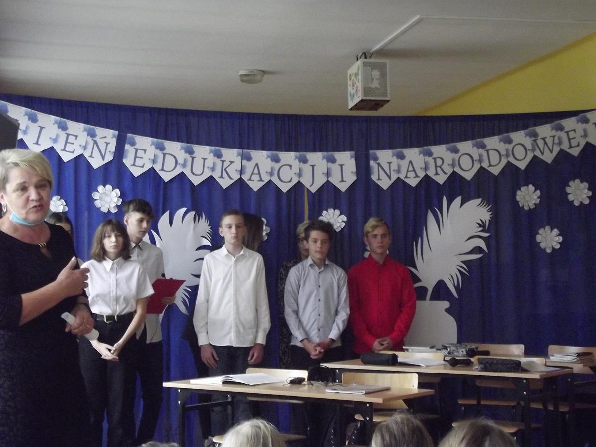 W naszej szkole z tej okazji odbywają się okolicznościowa akademia podczas, których uczniowie recytowali wierszyki i śpiewali piosenki. Akademię zakończyliśmy konkursem "Jak dobrze znasz swoich nauczycieli". Ciekawostki o nauczycielach zaskoczyły nie tylko uczniów. Dziękujemy uczniom za występ i wszystkim przybyłym gościom za to, że byli z nami w tym dniu.