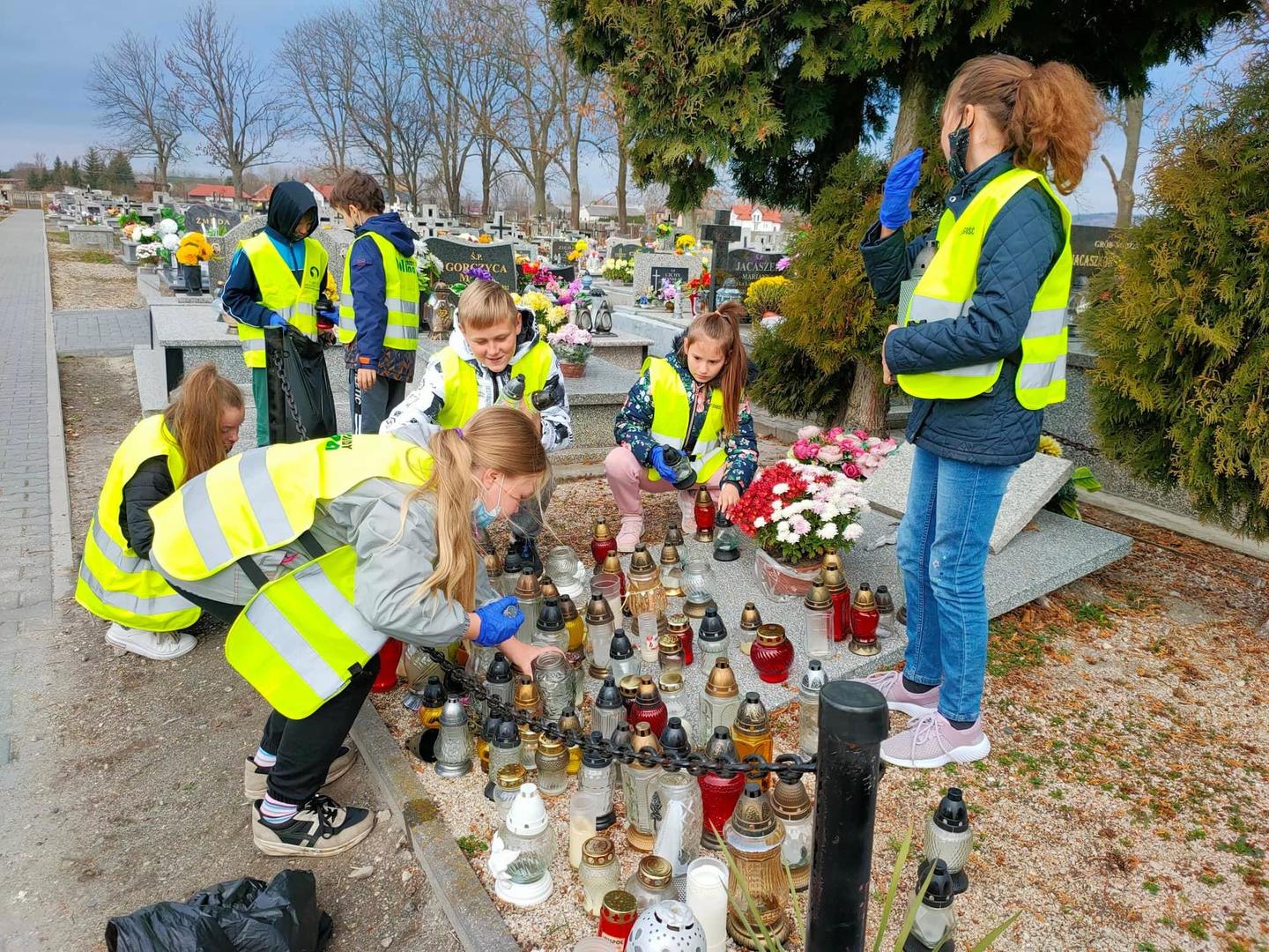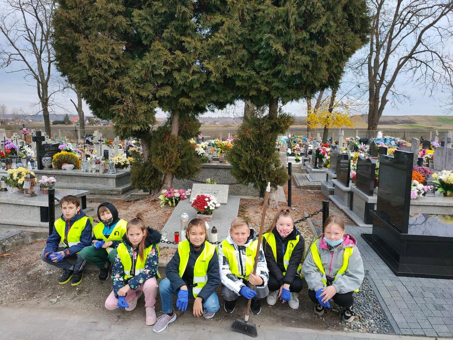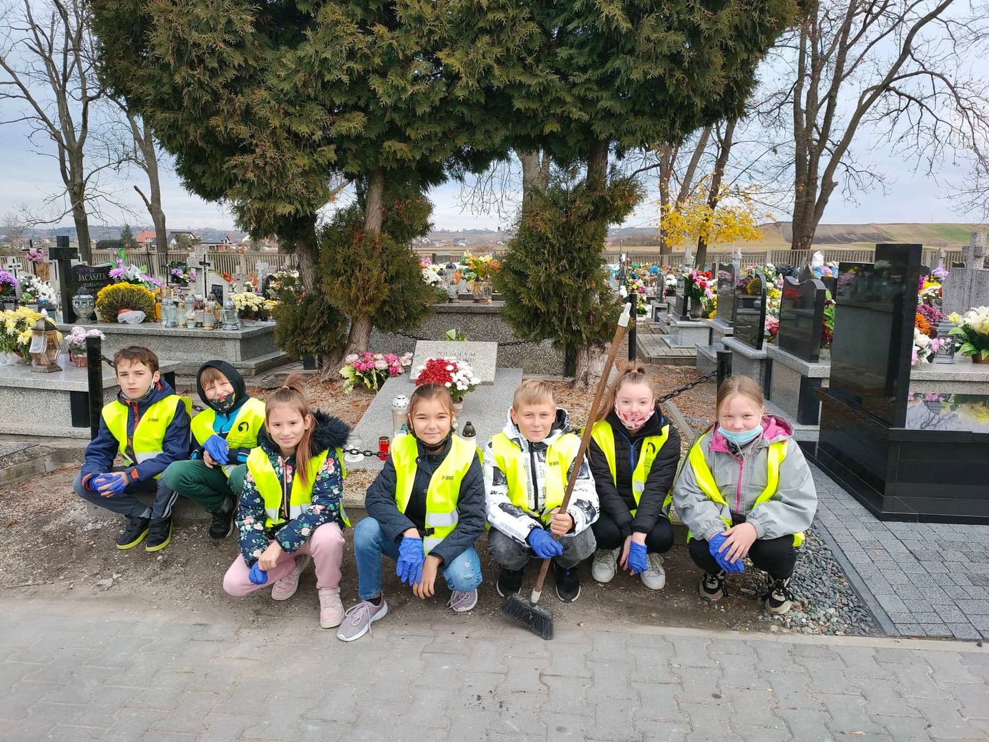 Uczniowie Szkoły Podstawowej pamiętają o poległych nie tylko w Święto Zmarłych, ale również z okazji zbliżającego się dnia 11 listopada. Dlatego z tej okazji klasa IV i V wraz z wychowawcą udali się na cmentarz zrobić porządki po Święcie Zmarłych i zapalić znicz.