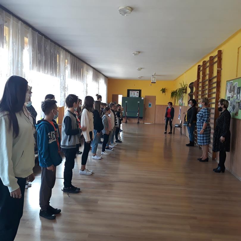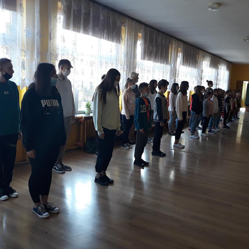 odśpiewany w murach szkoły przez uczniów kl. 1-8 wybrzmiał znakomicie