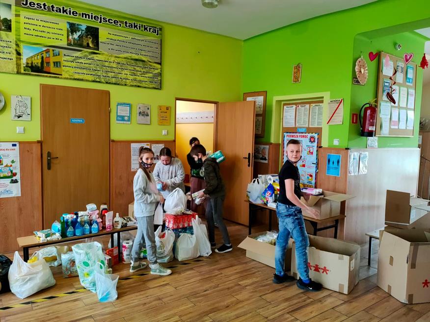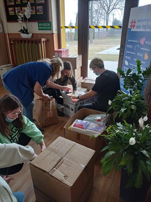 Nasi uczniowie czynnie włączyli się zarówno w zbiórkę, jak i pakowanie zebranych artykułów.