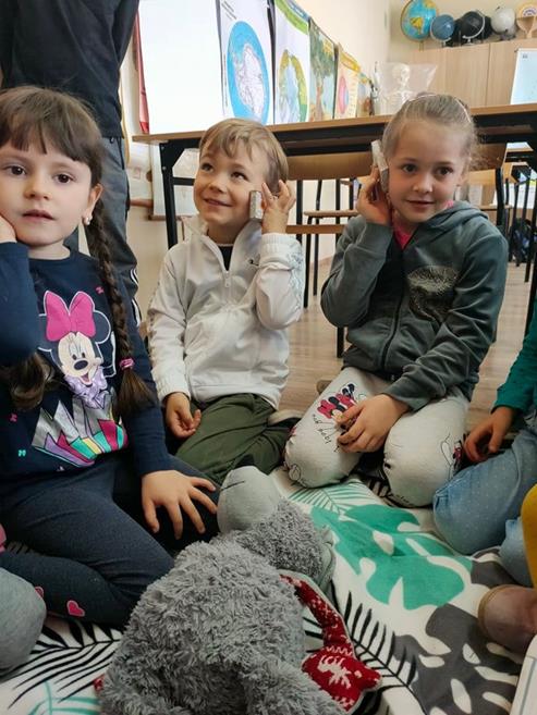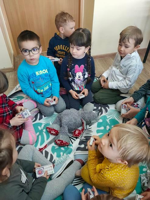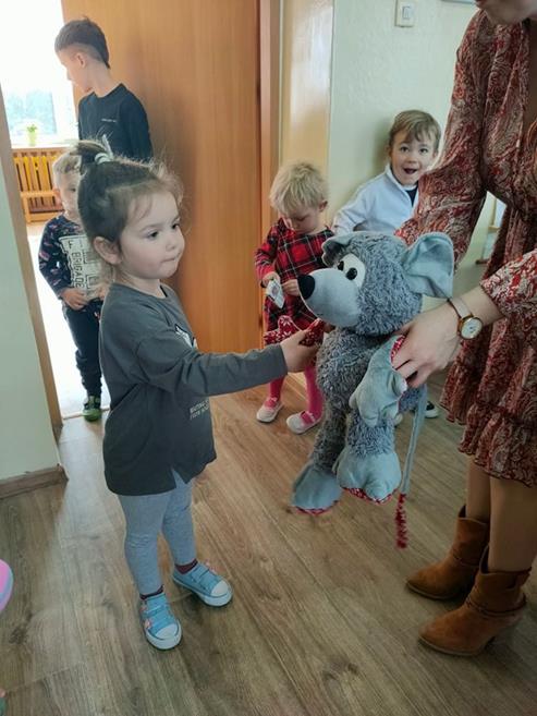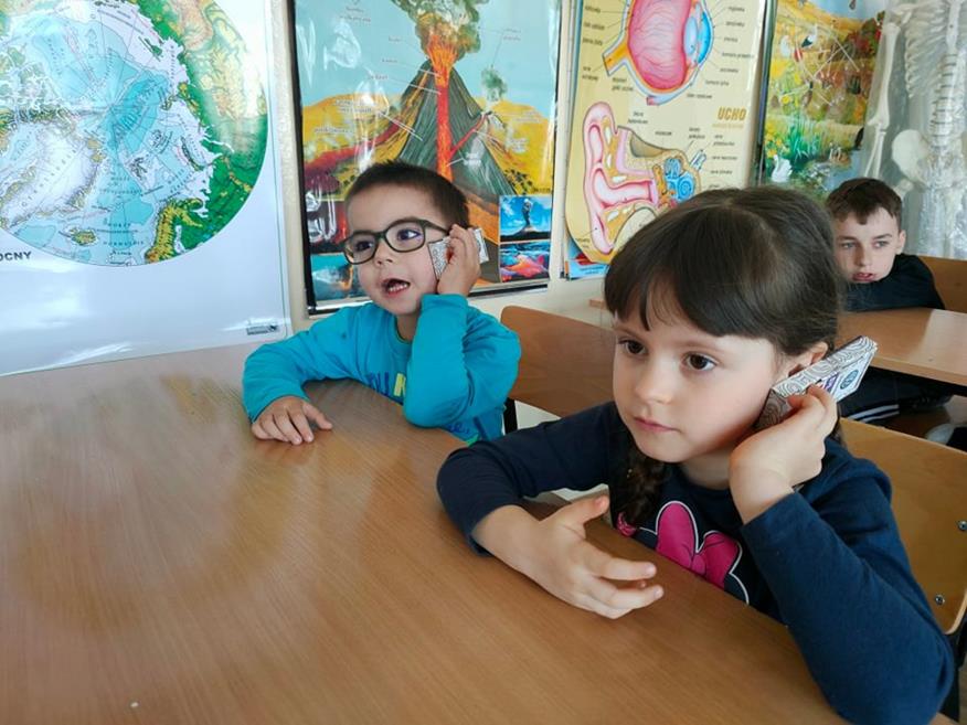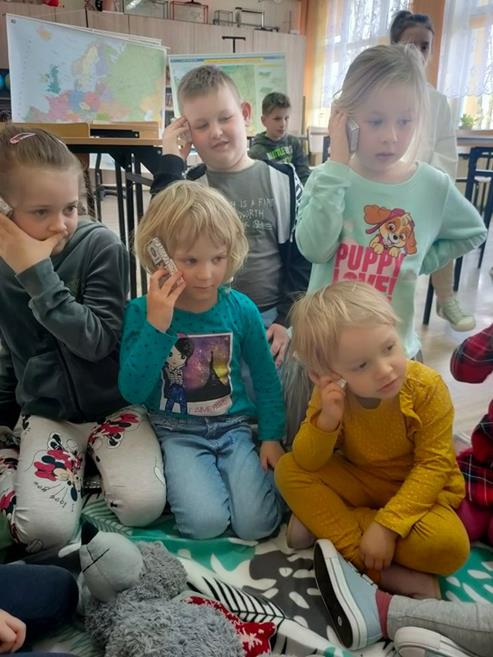 Podczas spotkania dzieci obejrzały animowany film z zasad udzielania pierwszej pomocy. Poznały numer alarmowy 112, który samodzielnie wystukiwali na swoich kartonowych telefonach. Następnie uczyły się prawidłowego wezwania pomocy przez telefon. Cała akcja zakończyła się sprawdzianem nowo nabytych umiejętności, gdyż przedszkolami miały za zadanie udzielić pomocy rannej myszce. Ćwiczenie to wszystkie dzieci zdały celująco!!!