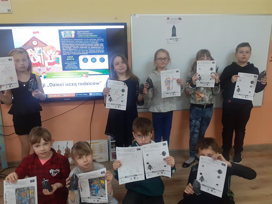 Dnia 28 marca uczniowie klas II i III wzięli udział w kolejnej lekcji z cyklu ,,Dzieci uczą rodziców " pt. ,,Odyseja kosmiczna". Podczas tej lekcji poznali terminy: kosmos, wszechświat i galaktyka. Przypomnieli sobie planety ,,Układu Słonecznego". Obejrzeli bardzo ciekawą prezentację, wypełnili karty pracy i wykonali fajne rakiety. Wiele ciekawych informacji z przeprowadzonych zajęć uczniowie przekazali swoim rodzicom - w myśl akcji ,,Dzieci uczą rodziców ".