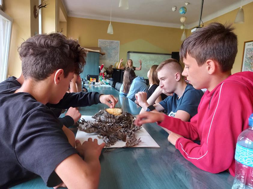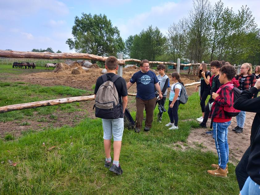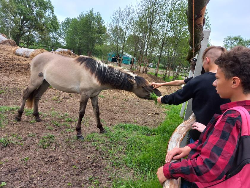 Cudze chwalicie swego nie znacie. Tak właśnie było na wycieczce w naszej okolicy. Uczniowie klas I – VIII uczestniczyli w jednodniowych warsztatach edukacyjnych pod nazwą „Renaturyzacja śródlądowej delty rzeki Nidy.” Zajęcia te stanowią część projektu Life realizowana przez Zespół Świętokrzyskich i Nadnidziańskich Parków Krajobrazowych. Początek wyprawy stanowiła miejscowość Umianowice. Poznaliśmy gatunki zwierząt chronionych, zagrożonych i wymagających odtworzenia na tym obszarze. Wypas koników polskich był nie lada atrakcją ponieważ bez skrępowania mogliśmy je karmić i głaskać. Dodatkową atrakcją był pokaz koni i akceptacja nowego członka stada. Wrażeń było co nie miara. Drugim przystankiem warsztatów była siedziba Zespołu Świętokrzyskich i Nadnidziańskich Parków Krajobrazowych położona w Krzyżanowicach, gdzie poznaliśmy przedstawicieli fauny i flory Ponidzia. Na żywo oglądaliśmy żółwia błotnego, dyptama jesieniolistnego czy dziewięćsiła popłocholistnego. Zmierzyliśmy także nasze sił w rozwiązywaniu krzyżówek i układaniu puzzli. Organizatorzy projektu zadbali nie tylko o miłą atmosferę, atrakcyjność zadań, ale i nasze głodne brzuchy zapewniając smaczne kanapki i dwudaniowy obiad.