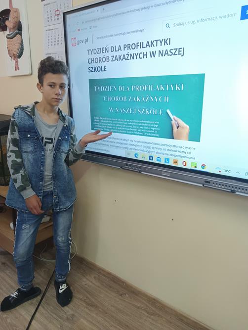 Nasza Szkoła włączyła się w kampanię, której inicjatorem jest Ministerstwo Edukacji i Nauki z Głównym Inspektorem Sanitarnym i organizacjami pozarządowymi. Tydzień dla profilaktyki chorób zakaźnych. Tematem przewodnim akcji jest przekazywanie wiedzy i umiejętności potrzebnych do dbania o zdrowie własne i najbliższych. Uczniowie naszej szkoły mieli okazję poszerzyć wiedzę na temat problematyki chorób zakaźnych. Odbyły się pogadanki, a wśród młodszych dzieci gry i zabawy o właściwych zachowaniach zdrowotnych. Podczas lekcji biologii zrealizowany został scenariusz zajęć profilaktycznych pt. „Zarażaj odpowiedzialnością”. Uczniowie zapoznali się z plakatami, ulotkami informacyjnymi o chorobach zakaźnych występujących w Polsce i na świecie, w jaki sposób się szerzą i jak można im zapobiegać.