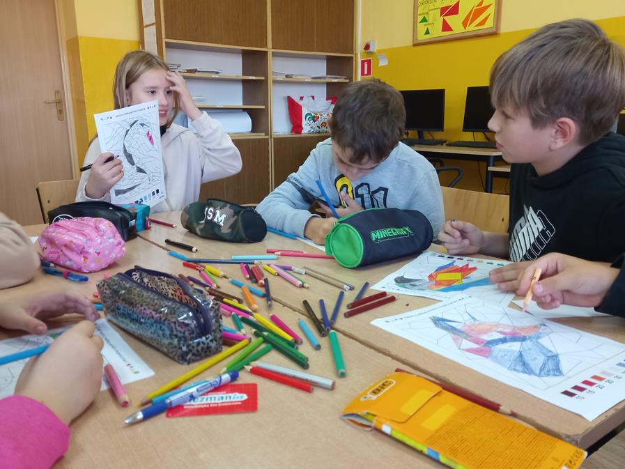 Wszystko zaczęło się od „Tabliczek szczęścia” z dobrą wróżbą, które uczniowie musieli rozszyfrować. Nie mogło zabraknąć piękna w matematyce, czyli kolorowania według wyników mnożenia.