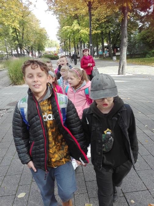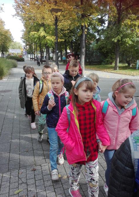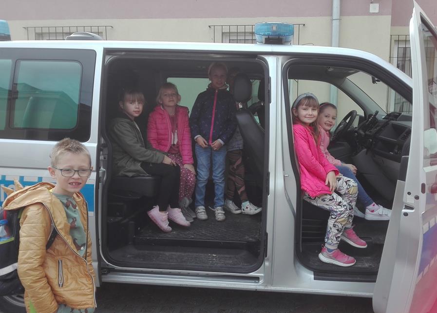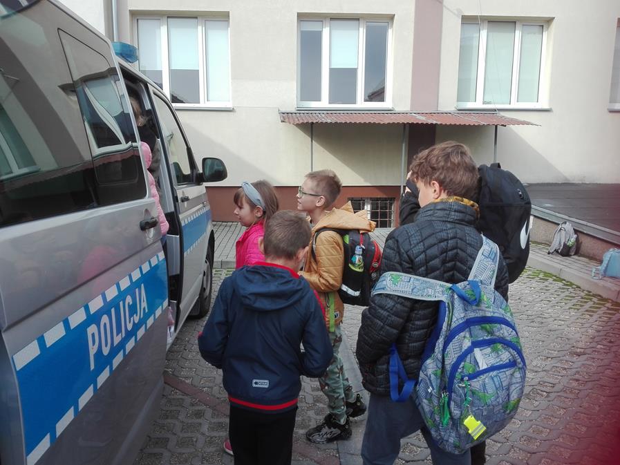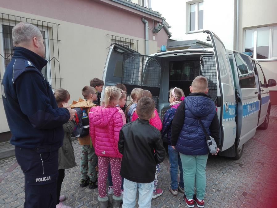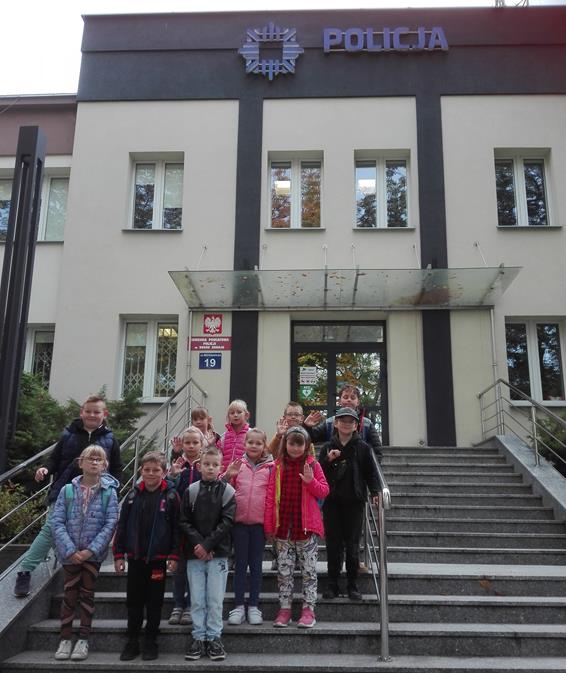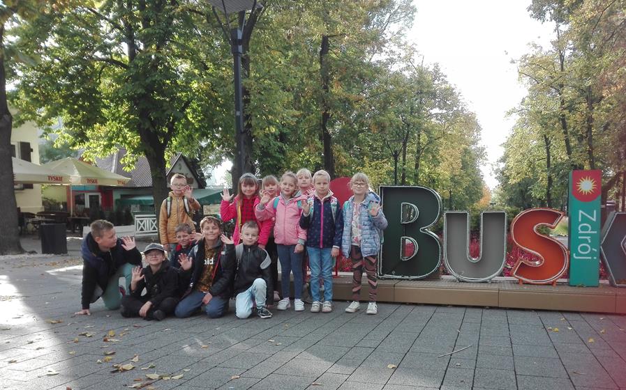 W dniu 5 października uczniowie klas I – III wybrali się na wyczekiwaną wycieczkę do Buska – Zdroju. Zwiedzanie zaczęliśmy od spaceru głównym deptakiem miasta, który doprowadził nas pod Komendę Powiatowej Policji. Tam, pod fachową i życzliwą opieką funkcjonariuszy zwiedziliśmy miejsca do których zwykły człowiek nie ma wstępu, chyba że coś przeskrobie. Uczniowie zapoznali się z pracą policjanta ruchu drogowego oraz pełniącego funkcje dyżurnego, obejrzeli sale przesłuchań oraz gościli na świetlicy policyjnej. Następnie na parkingu z bliska mogli przyjrzeć się policyjnym pojazdom takim jak: radiowóz, motocykl, a nawet elektryczne rowery. Uczniowie dowiedzieli jakie zasady obowiązują pieszych w różnych sytuacjach, w tym jak zachować się przy spotkaniu pojazdów uprzywilejowanych oraz po czym można je rozpoznać. Ponadto zapoznali się z atrybutami policjanta do których należą m.in.: tarcza zwana potocznie lizakiem, czapką czy gwizdkiem. Pan aspirant szczegółowo wyjaśnił jak i kiedy używać tych przyrządów na ulicy, aby kierować ruchem samochodowym.