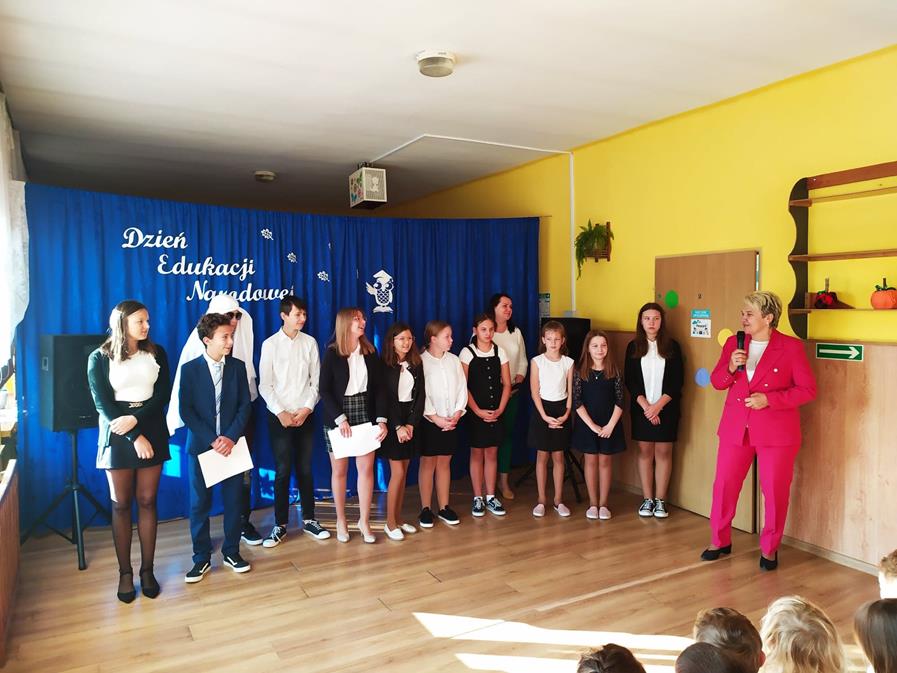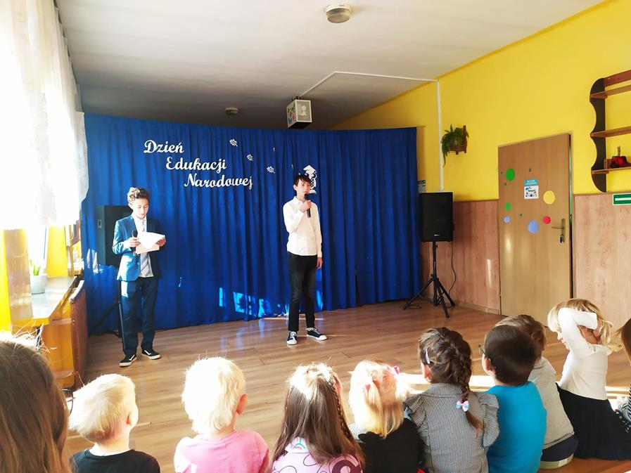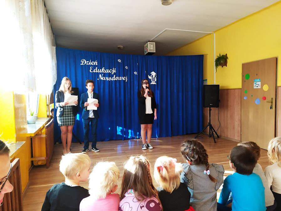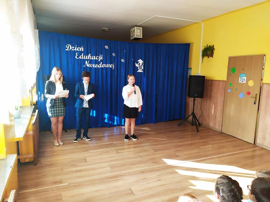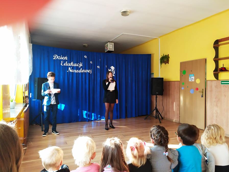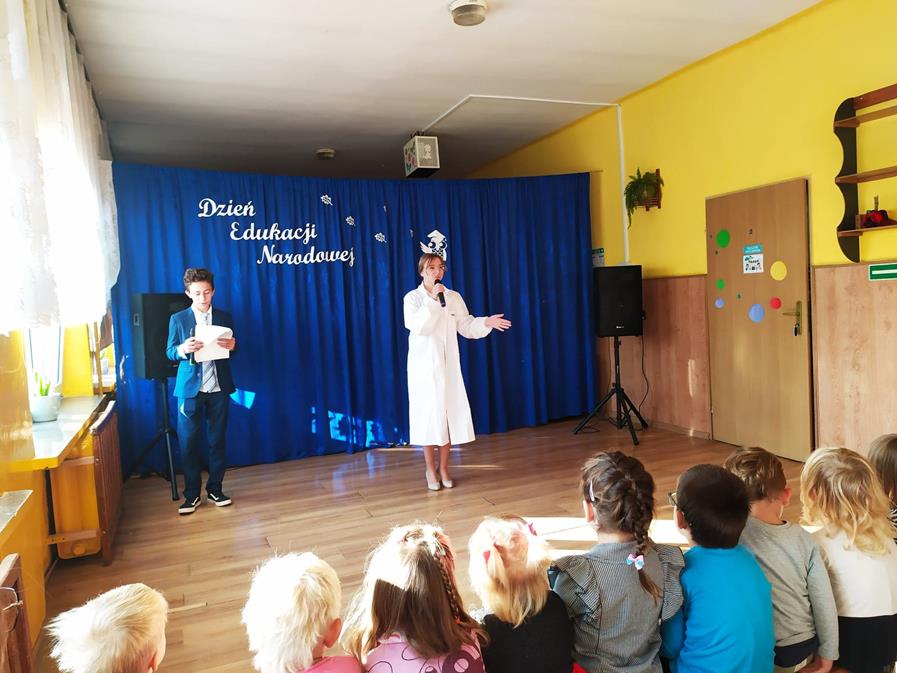 Z okazji Dnia Edukacji Narodowej, w przededniu tego święta, w naszej szkole, zorganizowana została uroczysta akademia. Uczniowie przygotowali krótki występ artystyczny prezentując swoje umiejętności wokalne i aktorskie. Aktorzy odegrali swoje role z wielkim zaangażowaniem i zabawny sposób przedstawili pracę nauczycieli.