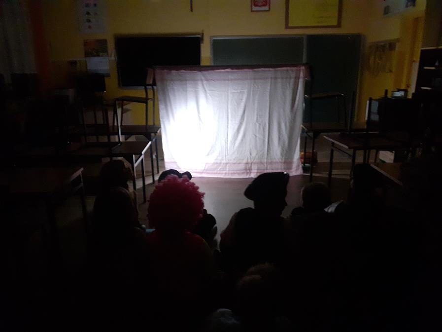 Z tej okazji uczniowie z klas I – III wysłuchali bajki pt. „Kopciuszek,” którą przeczyła mama naszego ucznia – p. Aneta Siudy. Dzieci z wielkim zaciekawieniem śledziły losy dziewczyny, która oddzielała ziarna od grochu i czekała na lepszy los. I tak jak każda bajka, i ta kończy się szczęśliwie, gdzie dobro zwycięża, a zło zostaje ukarane… Następnie przyszedł czas na teatr… teatr cieni, w którym to uczniowie i nie tylko oglądali przygody „Trzech świnek” i „Czerwonego Kapturka.” Był to dzień pełen wrażeń i sprawił wszystkim bardzo wiele radości.