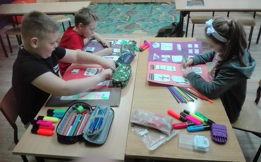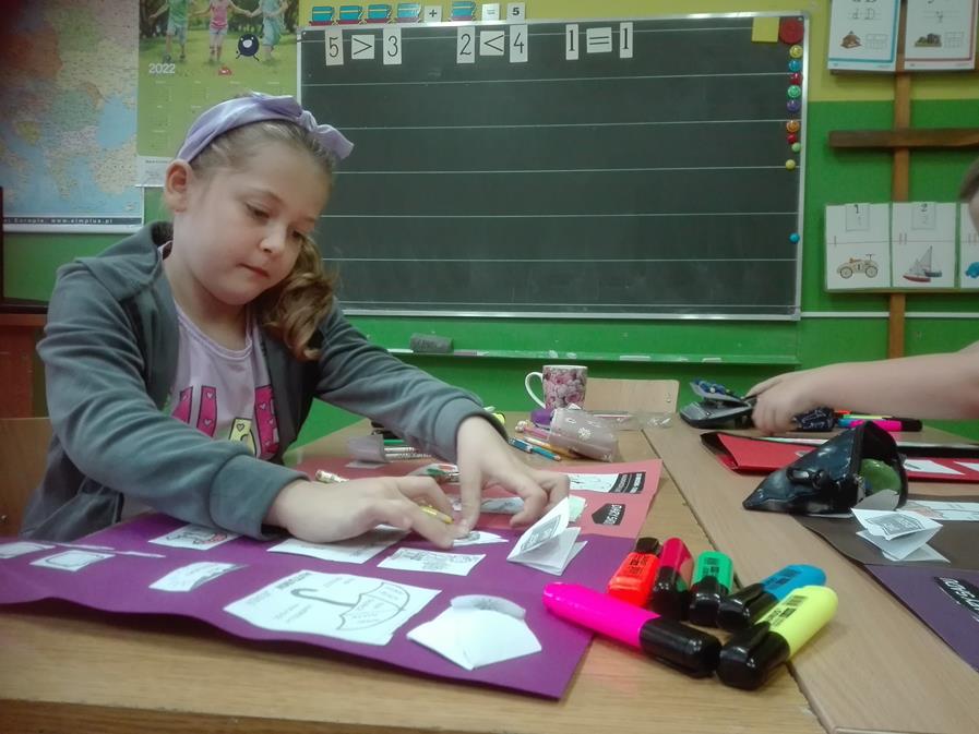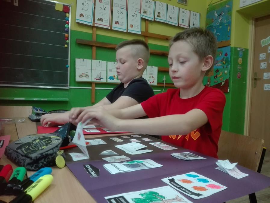 W listopadzie klasa pierwsza rozpoczęła realizację innowacji pedagogicznej „Lapbookowa nauka – cztery pory roku.” Głównym jej celem jest uporządkowanie, systematyzowanie i utrwalania wiadomości o porach roku występujących w Polsce. Lapbook to rodzaj teczki tematycznej i obrazkowej mapy myśli, w której umieszcza się informacje, ciekawostki, zadania i zagadki na wybrany temat. To wszystko jest przedstawione w ciekawej formie graficznej: przegródek, kieszonek , zakładek , harmonijek czy mini-książeczek. Uczniowie w zależności od pory roku będą przygotowywać cztery osobne książki tematyczne.