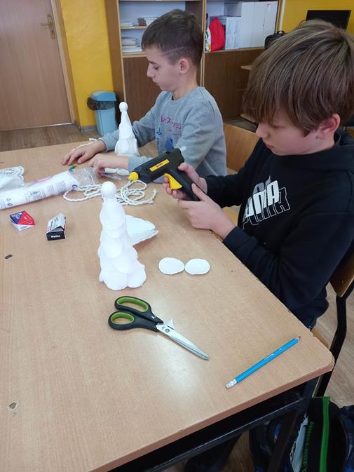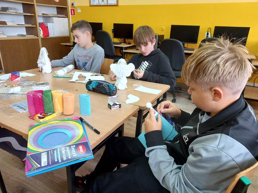 W związku ze zbliżającymi się świętami bożego narodzenia uczniowie klas IV-V pod opieką wychowawcy rozwijali twórczą aktywności plastyczną, rozwijali swoje zainteresowania, rozbudzali wyobraźnię oraz kreatywne myślenie i własnoręcznie wykonali ozdoby świąteczne – aniołki bożonarodzeniowe.