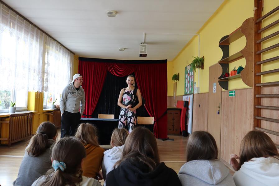W dniu 21.11.2022 roku gościliśmy w naszej szkole Teatr Profilaktyczny Kurtyna