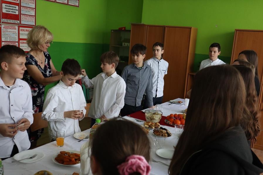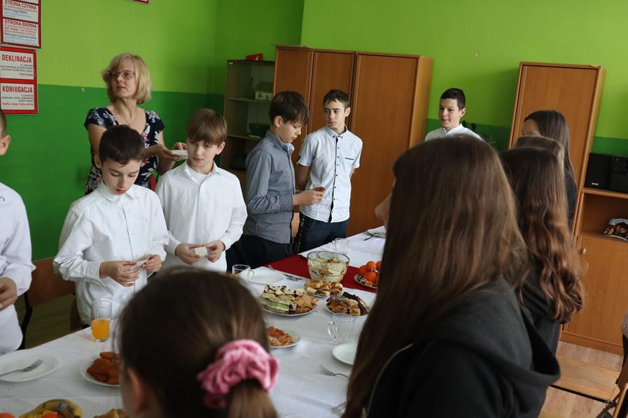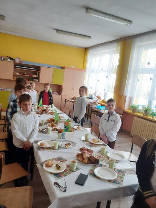 Następnie usiedliśmy przy stole zastawionym smakołykami. Było nam bardzo wesoło i miło spędziliśmy czas. Już wiemy, że za rok też wspólnie zasiądziemy przy klasowym, wigilijnym stole. Wesołych świąt!