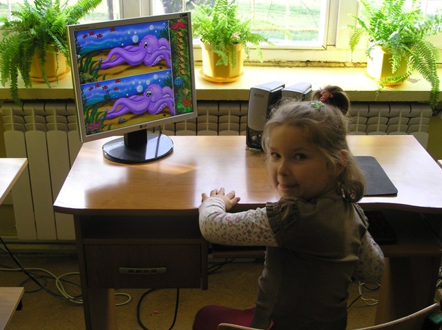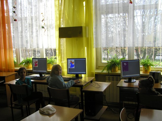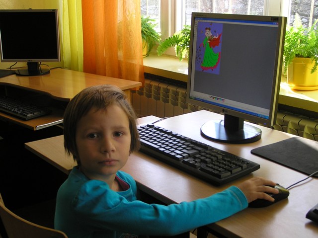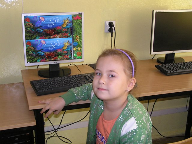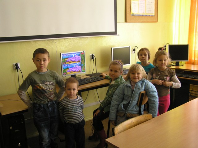 Grupa "0" z przedszkola 2 razy w tygodniu bierze udział w zajęciach komputerowych prowadzonych przez p. Barbarę Gawłowską - Kozak. Zerówkowicze na zajęciach rozwijają umiejętność właściwego korzystania ze sprzętu komputerowego, poznają narzędzia programu graficznego Paint i korzystają z gier edukacyjnych - ćwicząc pamięć, spostrzegawczość i zręczność.
