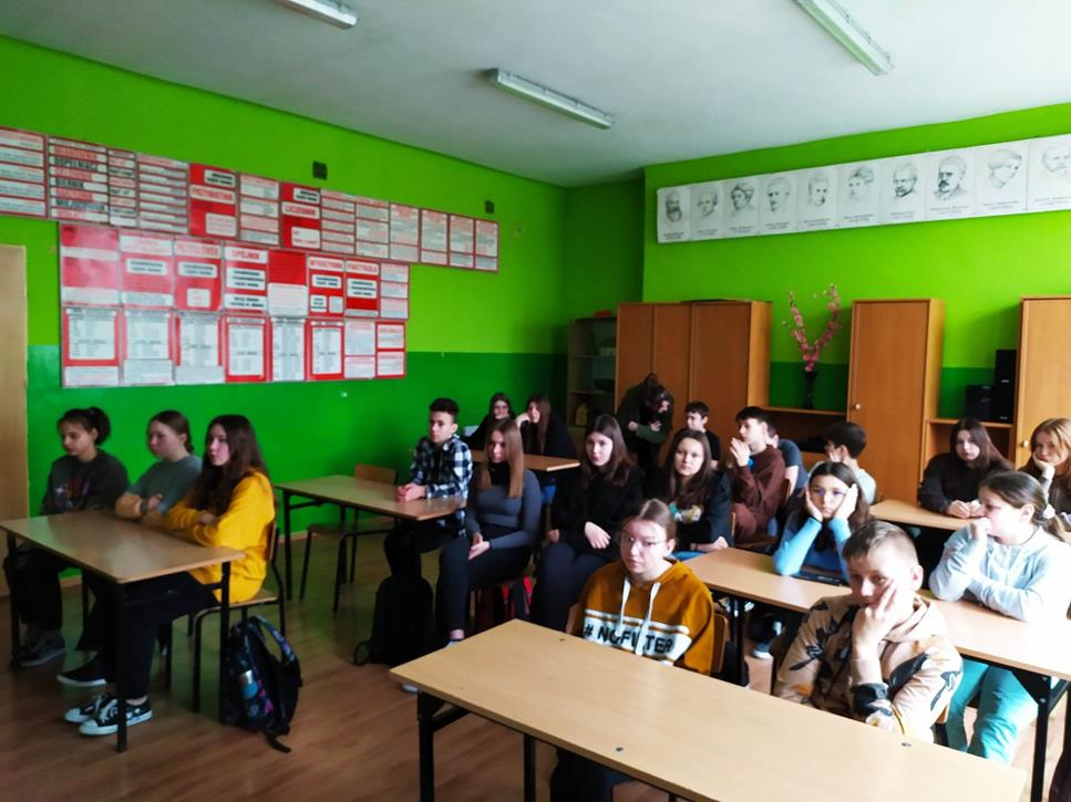 Z okazji Międzynarodowego Dnia Pisarzy i Pisarek uczniowie naszej szkoły wzięli udział w spotkaniu autorskim z panią Agnieszką Zielińską.-autorką książek z serii ,,Podróże