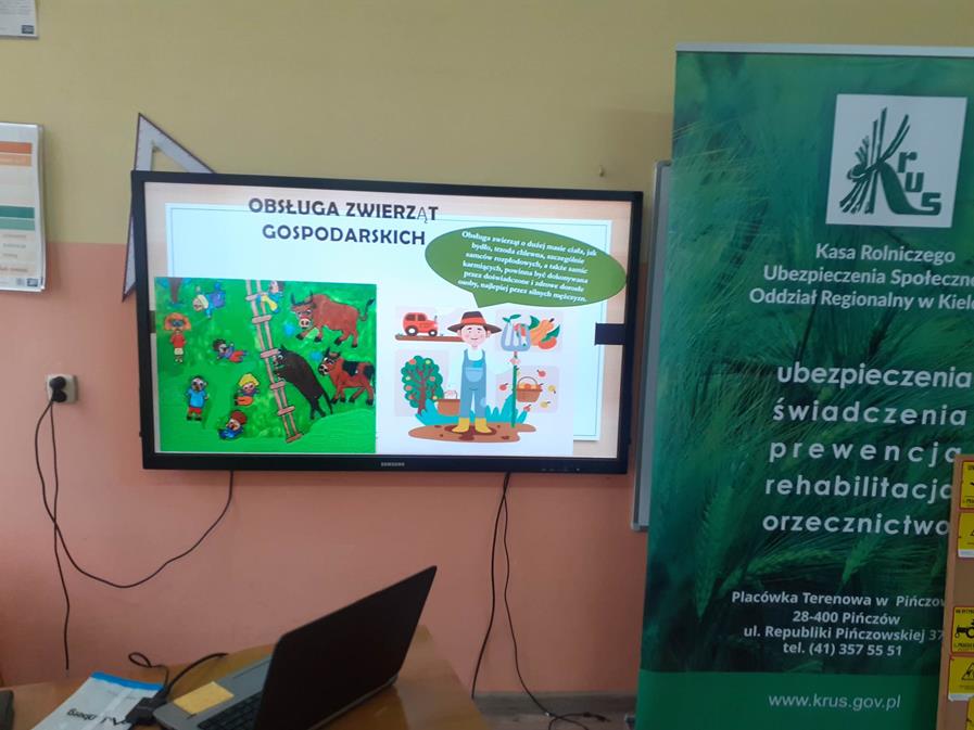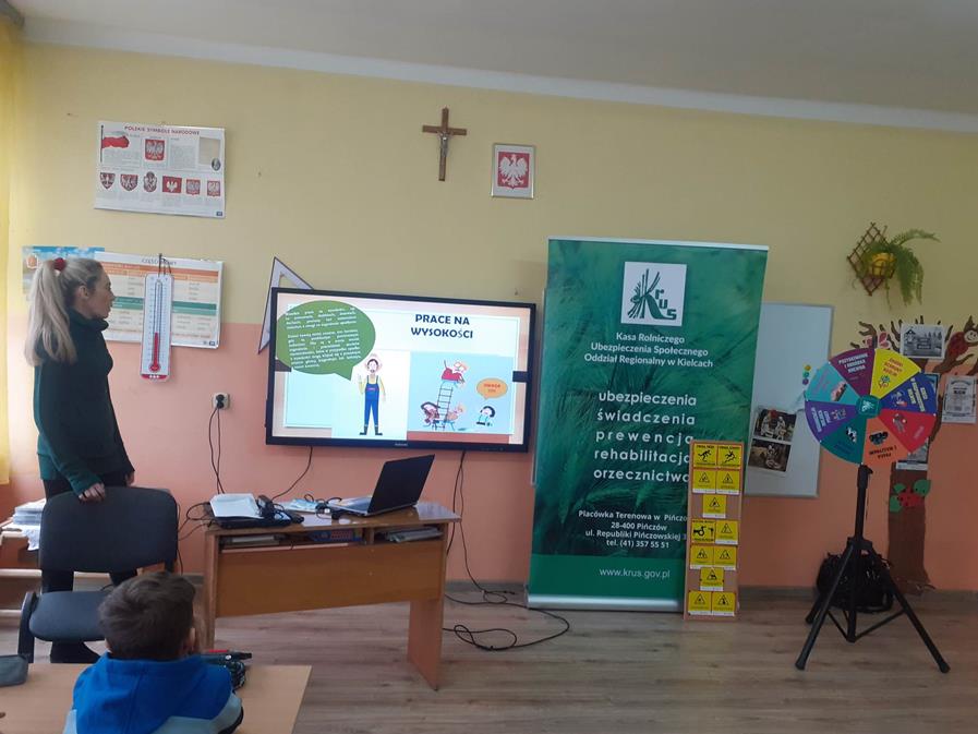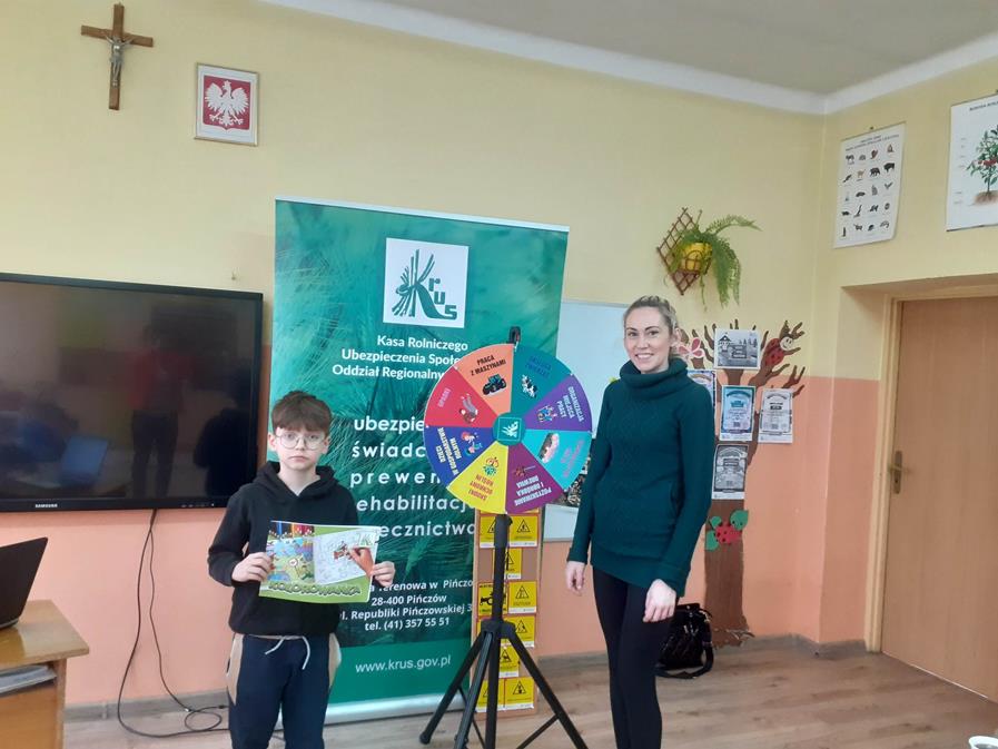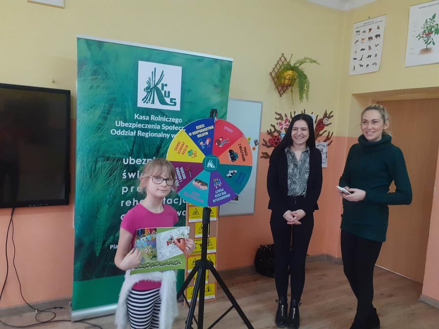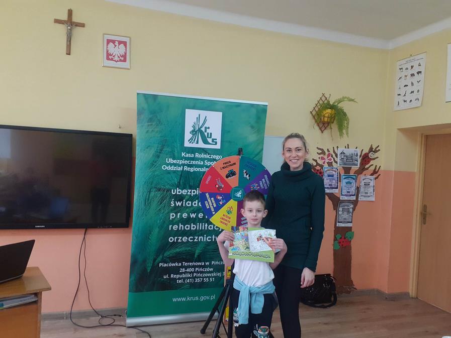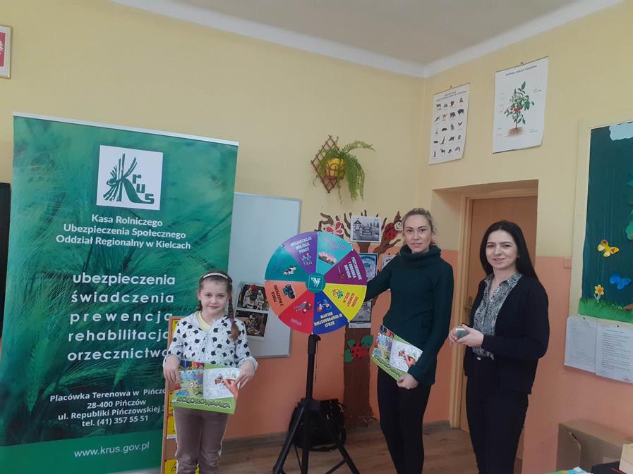 Dnia 27 lutego panie - przedstawicielki Placówki Terenowej KRUS z Pińczowa spotkały się z uczniami klas I - III naszej szkoły. Wszyscy wysłuchali interesującej prelekcji na temat niebezpiecznych substancji w gospodarstwie rolnym. Panie zachęciły dzieci do wzięcia udziału w XIII Ogólnopolskim Konkursie Plastycznym pn. ,,Bezpiecznie na wsi mamy, niebezpiecznych substancji unikamy".
