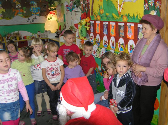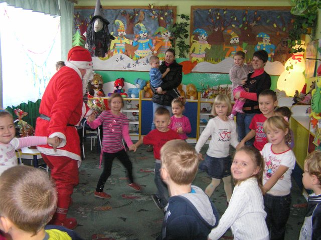 Dziś - 6 grudnia jak co roku nasze przedszkole odwiedził Mikołaj .Zarówno dzieci jak i rodzice z niecierpliwością oczekiwały tak długo nie widzianego gościa. Cóż to była za radość, gdy wreszcie wszedł do sali ciągnąc za sobą "ogromny wór" z prezentami.