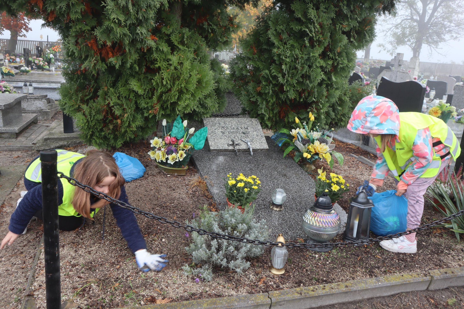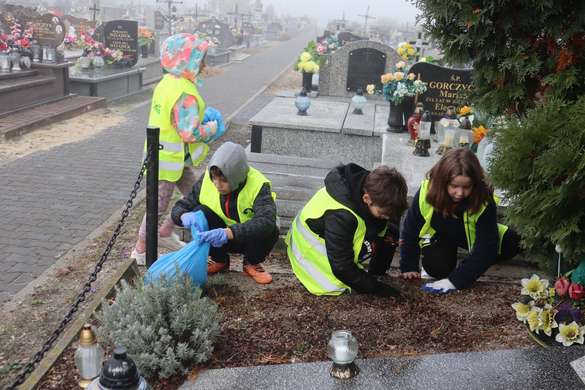 24.10.2023r. uczniowie klas IV i V wybrali się na cmentarz parafialny w celu uporządkowania Grobu Nieznanego Żołnierza. Dzieci wraz z wychowawcą uprzątnęli grób z liści, umyli nagrobek oraz zapalili znicze i położyli kwiaty. Na koniec uczniowie uczcili minutą ciszy pamięć żołnierzy, którzy oddali życie w obronie naszej Ojczyzny.