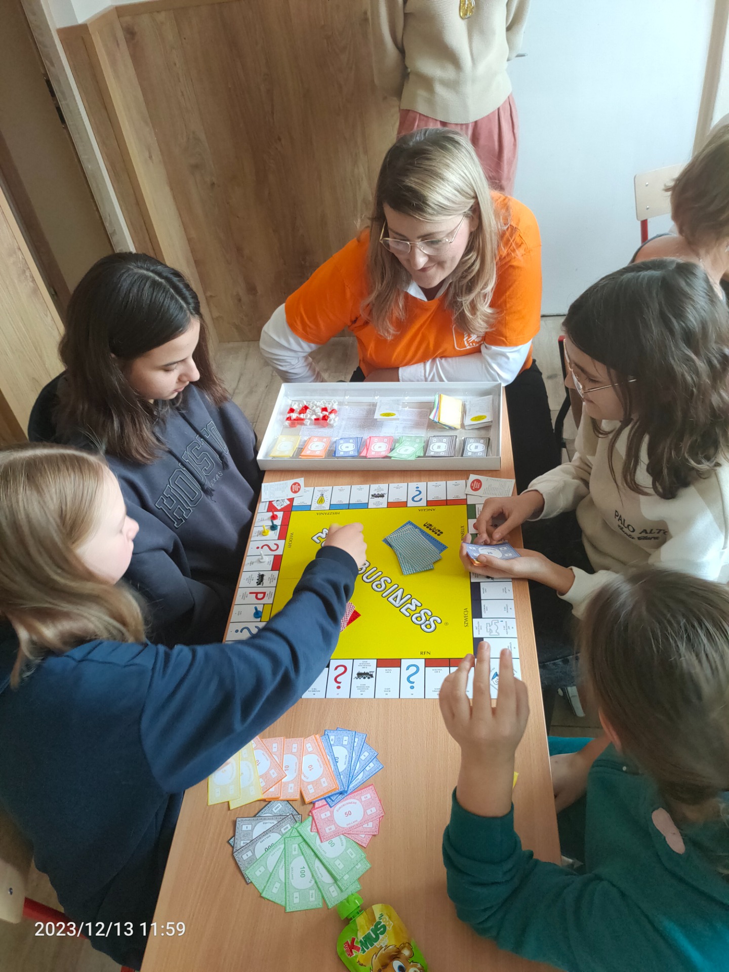 Wspólnie z nią uczniowie, przez godzinę lekcyjną , mogli bawić się w różne gry zakupione ze środków pozyskanych w projekcie. Kupowali oni więc i sprzedawali różne nieruchomości, wymieniali najkorzystniej waluty, zarządzali hotelami, słowem zabawa była znakomita.